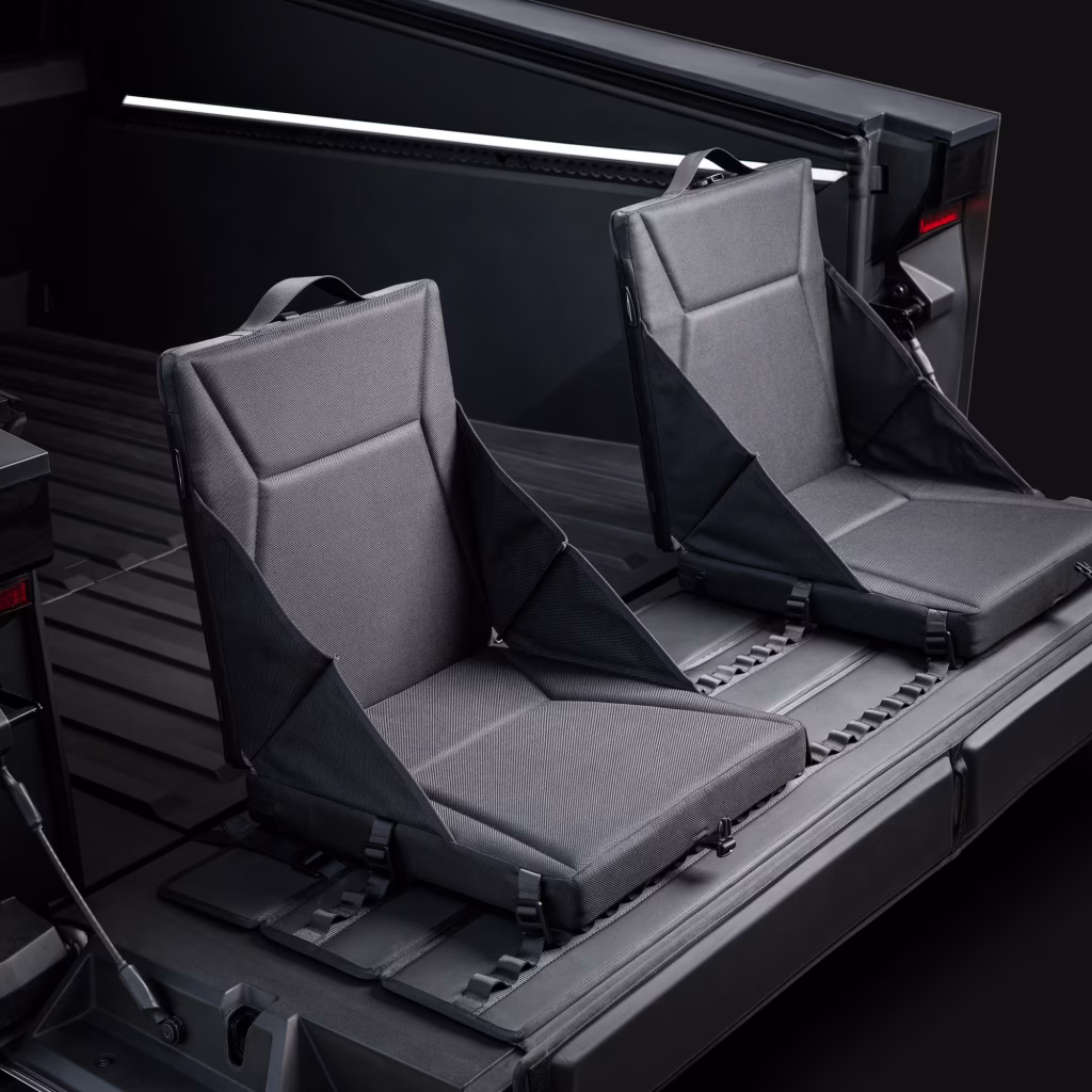 Tesla, bagaj kapağı pedine ek olarak, Cybertruck’ınıza takabileceğiniz 100 dolarlık bir koltuk da satıyor. Bu ürünün amacı, araç koltukları ek olarak yer oluşturmak. Kullanılmadığı zamanlarda ise katlanabilmesi ürünü daha da cazip hale getiriyor.